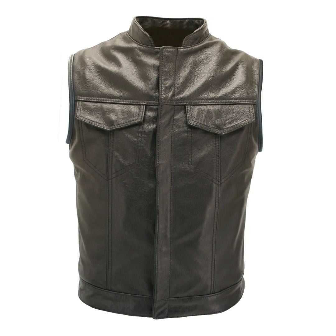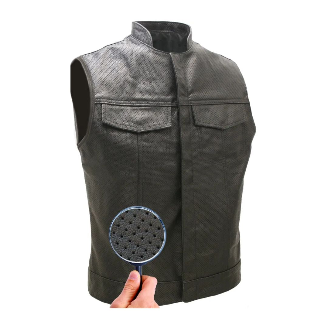 Club Style Perforated Leather Biker Vest
