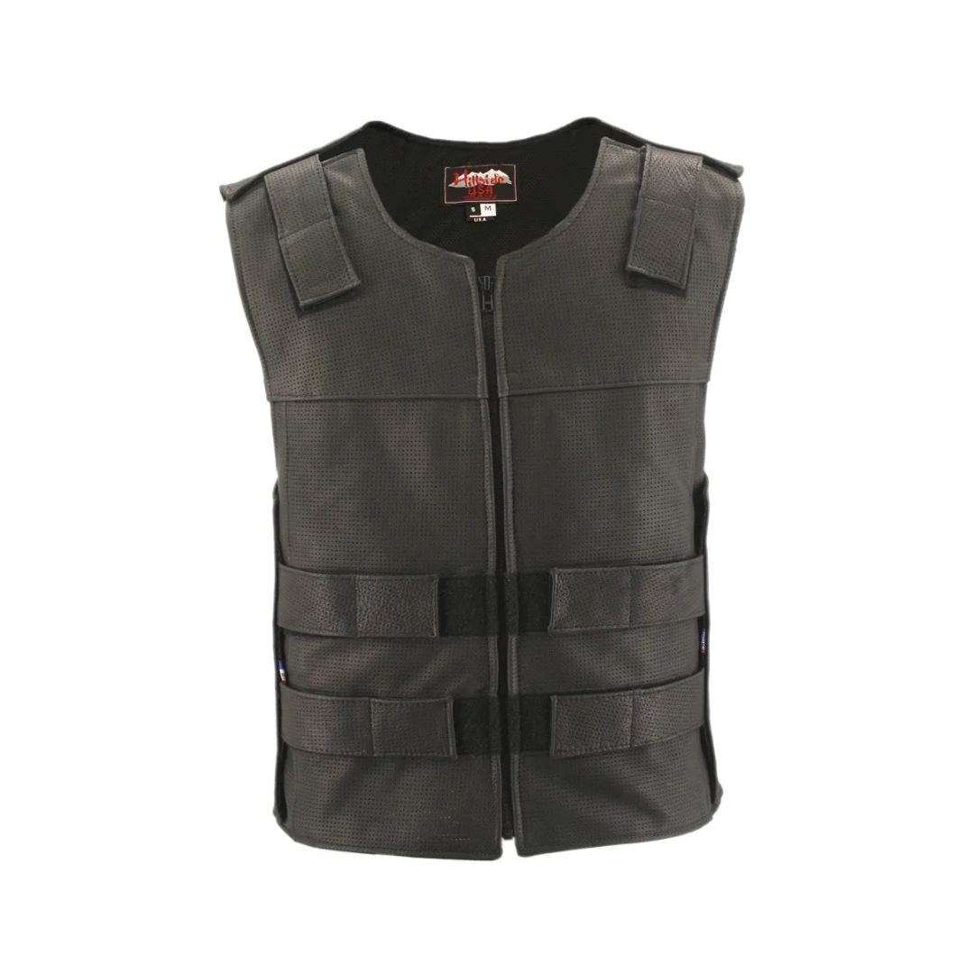 Full Perforated Zippered Tactical Style Leather Vest (Custom-Made)