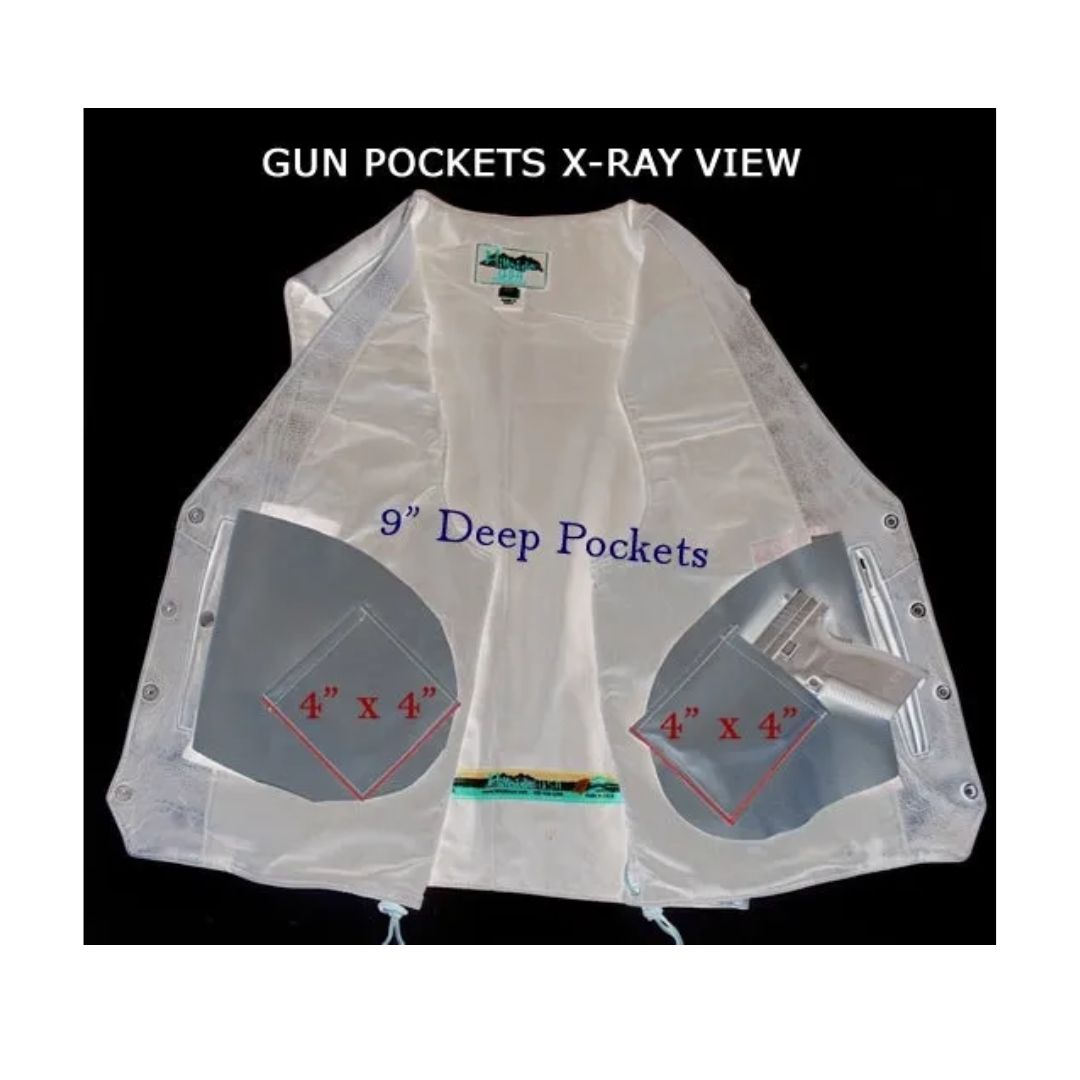- Two internal leather lined pistol pockets (approx. 9" deep) one zippered