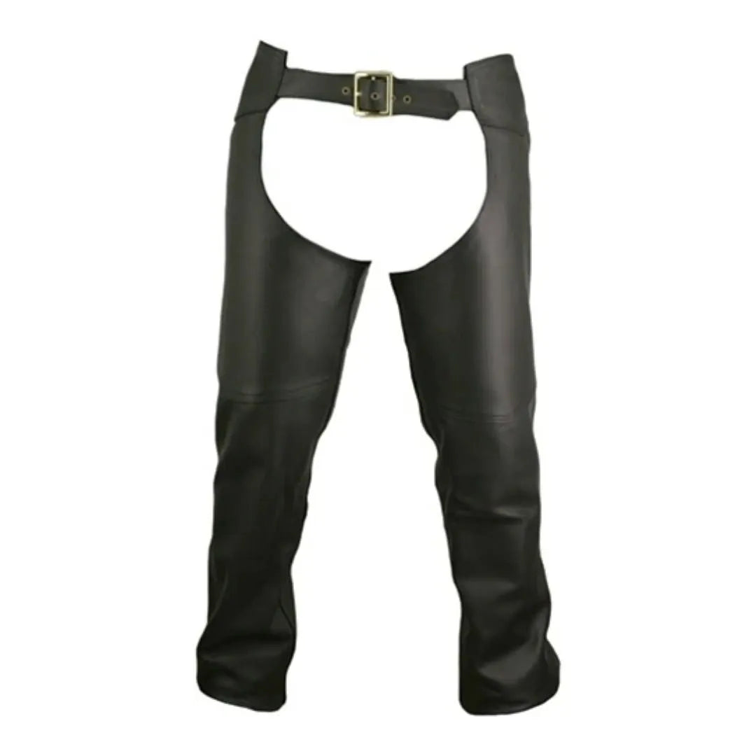 Men's Double Stitched Leather Chaps Brown. Functional, rugged, durable and attractive. Our chaps are hand-crafted and custom-made in the USA. Designed just for you and made to order. Double stitch, brown 1.6-1.8 mm (4-41/2 oz.) Soft, Supple, and Thick Cowhide Naked Leather, YKK antique brass hardware. Lifetime Guarantee.