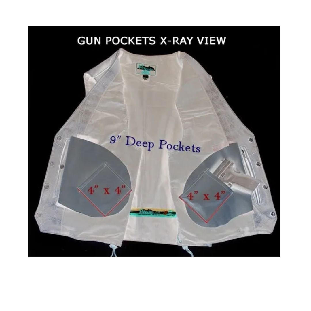 • (1.2-1.4mm) Front Quarter Genuine Horsehide Leather • Two internal Leather Lined pistol pockets • Double-stitched lines throughout