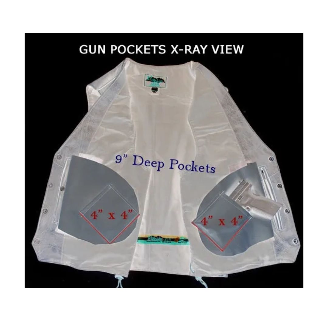 - Two internal Leather Lined pistol pockets (approx. 9" deep) one zippered and the other snapped.