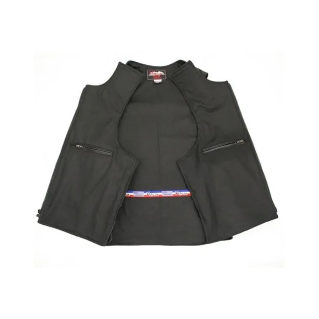 Men's Bulletproof Style Leather Vest. Offers the same quality as the Standard bulletproof style model, with a Front Zipper, adding the Functionality and quality that only USA can offer. Hand-crafted with durable Full-grain Cowhide leather (2 1/2 oz) Large panel back easy to add patches or custom embroidery. Men's Tactical Street Vest with zipper. Adjustable leather straps at shoulders for length, waist/chest for varying waist and chest dimensions. Making it a perfect for wearing alone or over your jacket. Zippered Bullet proof Style Leather Vest. Polytwill lined with two inside zippered pockets, sizes available (S-M) ( L, XL) (2XL, 3XL, 4XL)(5X-6X-7X) Lifetime Guarantee.