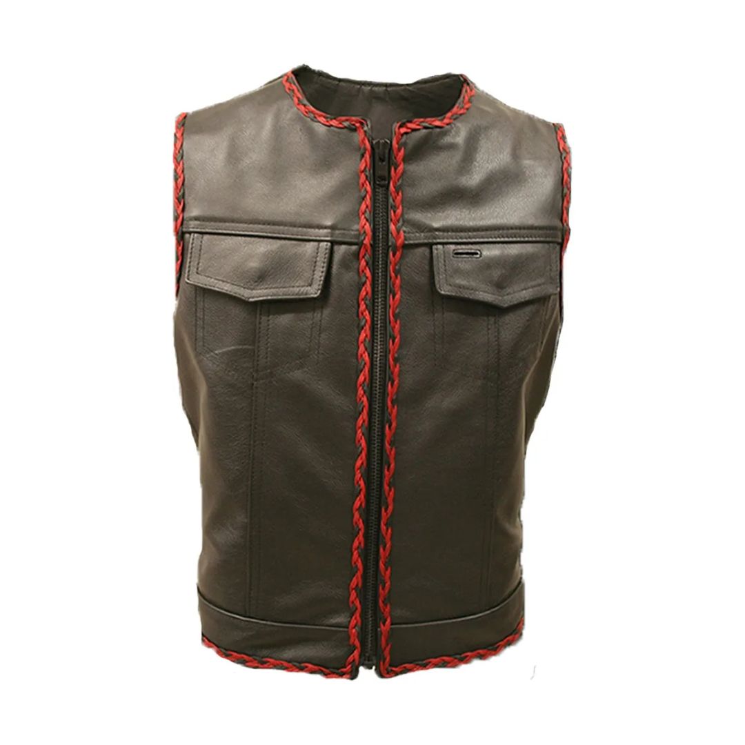 Outlaw All Leather Braided Biker Vest / Side Lace
