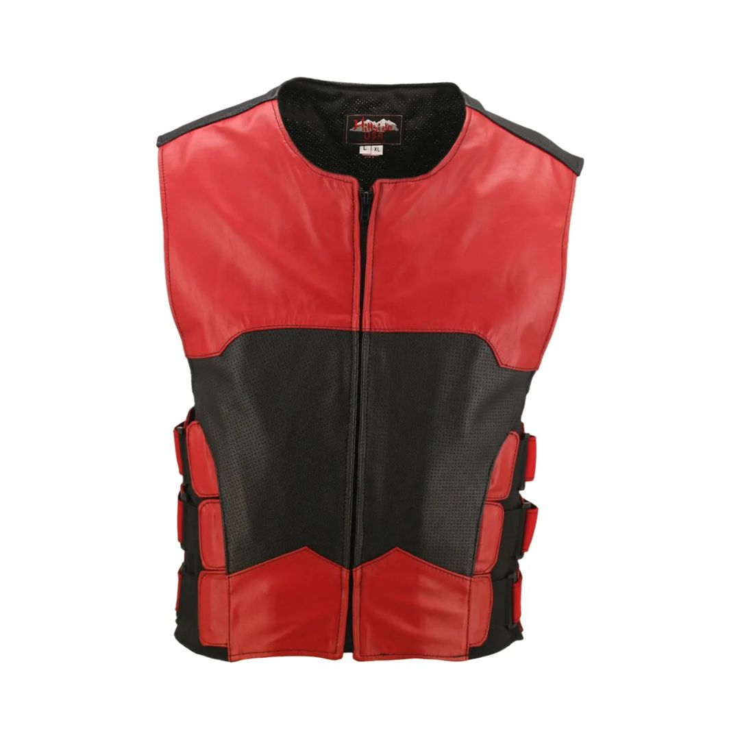 The Interceptor Ventilated Leather Vest Red/Black (Custom-Made)