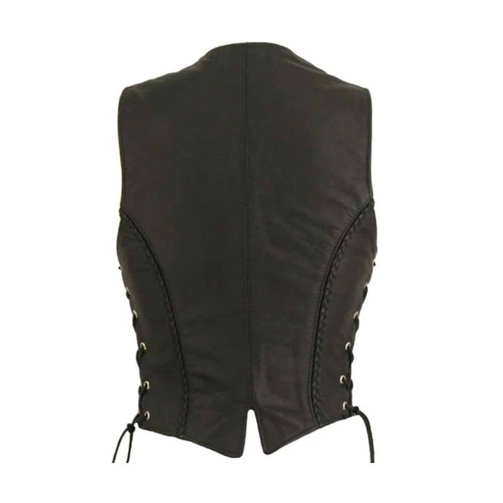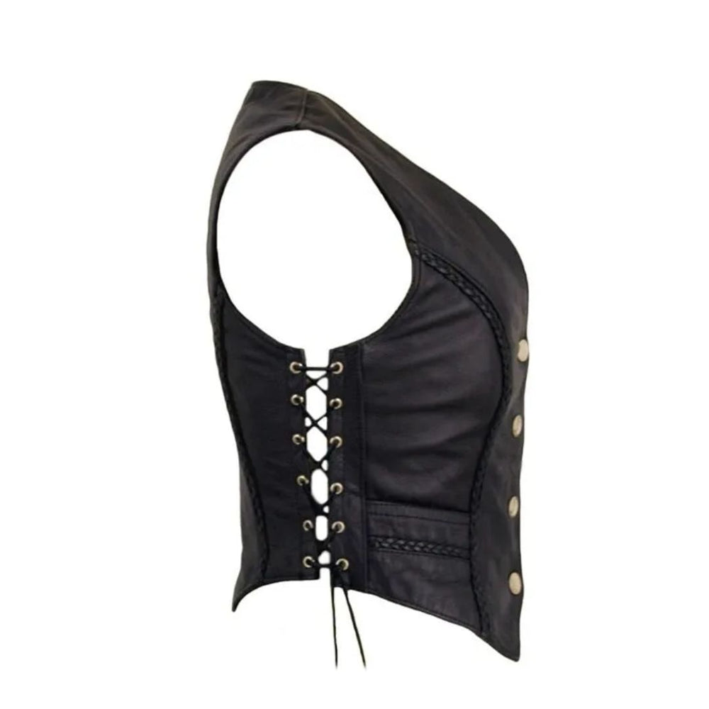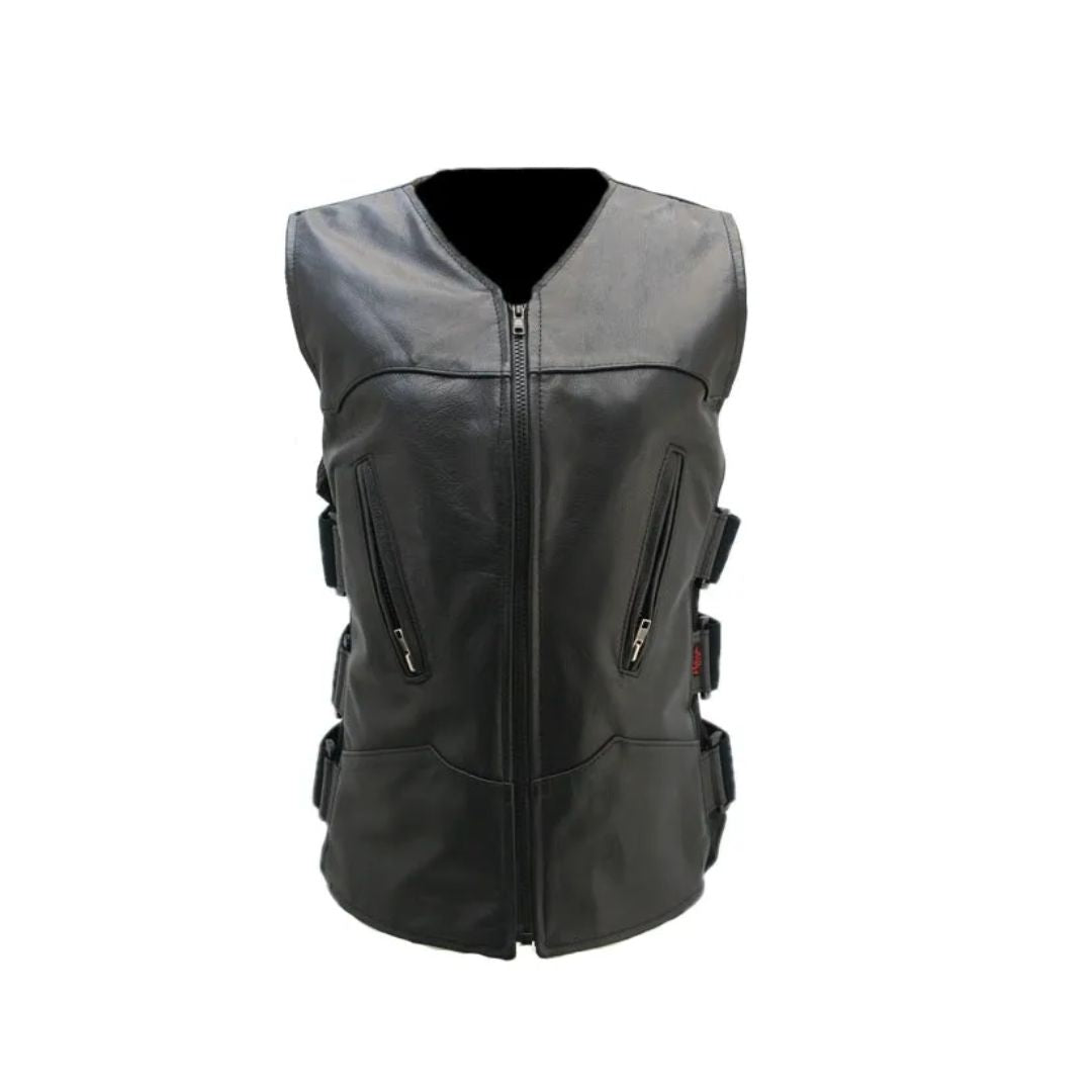 Women's Zip Up Black Biker Leather Vest with gun pockets
