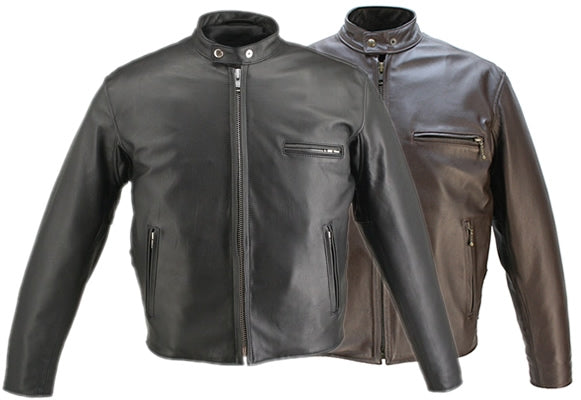 Body armor sold separately. YKK silver hardware. In addition, this jacket offers (Cafe "Racer" Horsehide Jacket) Bi-Swing Back and Vented Underarm Gussets for comfort and range of movement. Lifetime Guarantee.